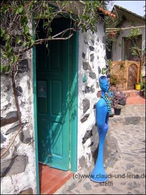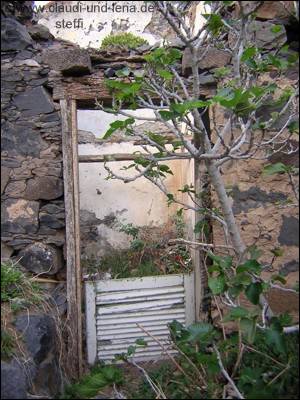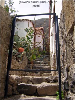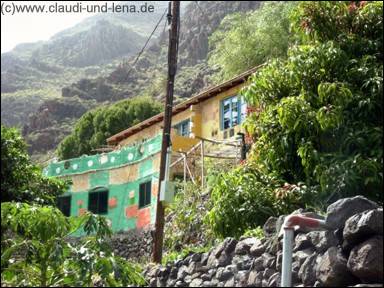 An diesem Haus links mit diesem gelben Briefkasten in El Guro geht der Weg zum Wasserfall los. |