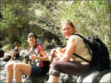 | Uschi und ich sind heute ins Büro von Servicios Integrados und haben verhandelt. Erfolgreich versteht sich. Wir bekommen einen Tag zwei Autos umsonst, dazu 120.- für unser Essen und können morgen umziehen. Das ist doch Klasse und wirklich ein guter Ausgleich für den Frust der ersten Tage. Hier nochmal ein Dankeschön an das Team von Servicios Integrados und speziell an Frau B.! Wir können eine Buchung dort wirklich empfehlen, denn auch der Kontakt vor unserem Urlaub war immer sehr nett. Es war wohl wirklich das erste Mal, dass dem Team dort so etwas passiert ist. Zurück in der Casa Wartburg haben wir die anderen Mädels über unseren Erfolg informiert, natürlich erst a bisserl gelogen aber sie haben es uns eh nicht geglaubt, dass die Casa Mercedes nicht frei wird ;-) Wir sind dann gegen 14.00 Uhr aufgebrochen zur Wanderung an den Wasserfall,
