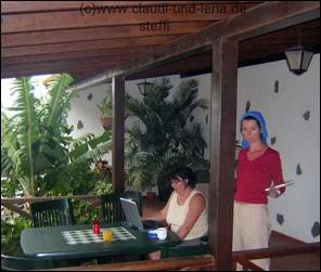 Wir waren nun jeden Abend sehr gut Essen, ob im El Mirador, im El Descansillo, im Sebastian oder im Orquidea. Die teuerste Rechnung war am Sonntag für 5 mal Paella, 4 Salate,4 Liter Wein, 3 Liter Wasser, 6 "Anisatoren" (Daggis Name für den spanischen Anisschnaps), 2 Bier und 2 Cola € 120.-. Ansonsten waren wir immer mit ca. € 80.- inklusive Getränke nicht teuer dran. Den Abend haben wir dann endlich in der Casa Mercedes auf der herrlichen Terrasse mit Meerblick ausklingen lassen. |