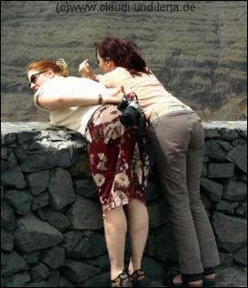 Nach einer Stunde sind wir dann wieder aufgebrochen. Immerhin haben wir den schrecklichen Golfplatz von Fred Olsen, einem Norweger dem wohl einiges auf Gomera gehört, samt dazugehörigem Luxushotel gesehen. Auch der Flughafen von Gomera ist neben Playa Santiago, allerdings ist dieser durch die nur 1,5 km lange, bzw. kurze Lande- und Startbahn nicht für internationale Flüge freigegeben. Durch den mittlerweile noch nebligeren Nationalpark sind wir dann zurück nach La Calera gefahren. A bisserl hab ich jeden Tag an den Bildern geschafft, so ganz ohne Rechner geht es halt doch nicht lange bei mir ;-) |