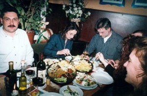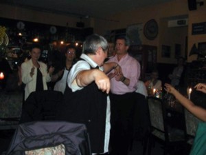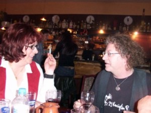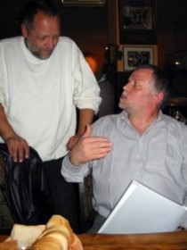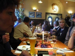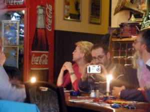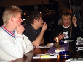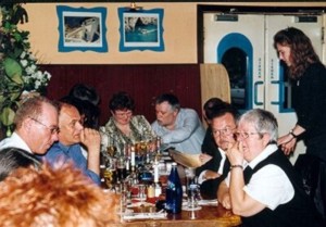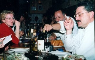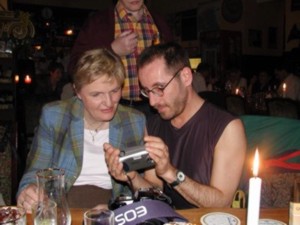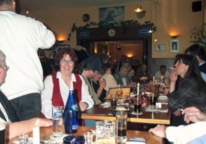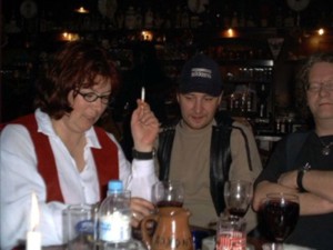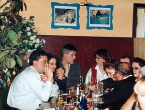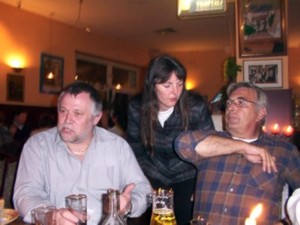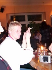 Leider mussten sich dann bald weiter Leute verabschieden. Die Schnaffels und die Rs verpassten ihren Zug nach Herne, aber Uli erklärte sich bereit sie irgendwie im Auto unterzubringen obwohl die Schwiegermutter von ihm auch noch ab Gelsenkirchen mitfahren wollte ;-) Immerhin hielten wir es bis nach zwei Uhr im Plaka aus und die Wirte vom Plaka mit uns ;-) Ingrid Maus erbarmte sich dann auch schon mal eine Fuhre heimzufahren und Embo bestellte zwei Taxen, einen Großraumwagen für uns sechs mit Rübe und ein weiteres für die Anderen die nach Lohhausen mussten. Der Großraumwagen war leider allzu schnell da,