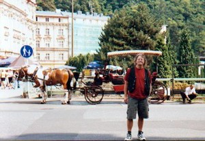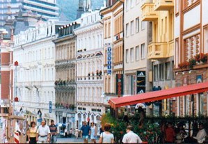 Nach und nach fuhren dann Alle ab, auch Thommy und ich. Gestern sind einige schon in der Tschechei gewesen, die Grenze ist nur ca 2 km von der Dachsbaude entfernt und so konnten doch noch eben preiswerte Zigaretten gekauft werden und getankt werden. Nachdem wir die Karte studiert hatten beschlossen wir, auch über die Tschechei und das Fichtelgebirge heimzufahren. Bei schönstem Wetter fuhren wir los und machten dann eine kleine Einkaufsrast in Karlobarski, Karlsbad. |