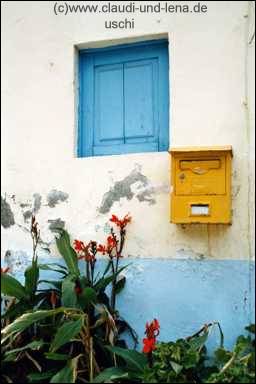 An diesem Haus links mit diesem gelben Briefkasten in El Guro geht der Weg zum Wasserfall los. |