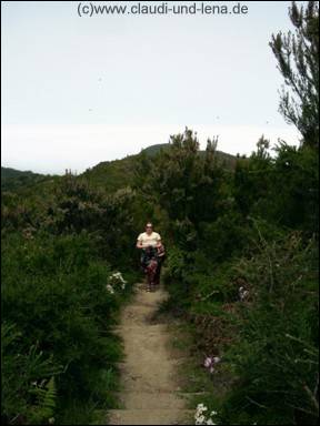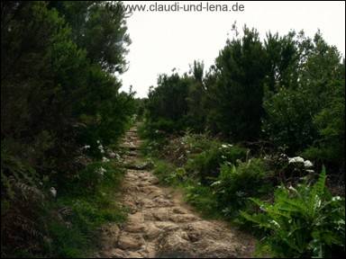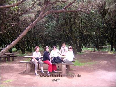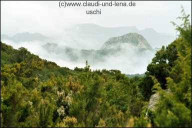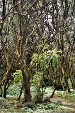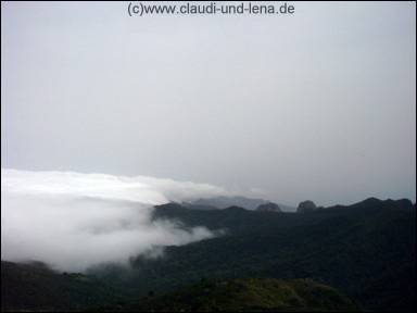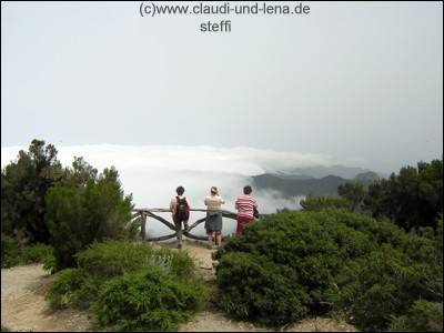 Nachdem wir uns gestärkt hatten fuhren wie einen Parkplatz weiter an, von dort aus kann man auf einem sehr schönen Weg den Gipfel das Gargajonay (1472m) besteigen. Die Landschaft ist unbeschreibbar und der Lorbeerwald ist auch sehr interessant. Mittlerweile waren wir auch über den Wolken...gut, ich gestehe es, es ist ja ein Nebelwald, also ist man dort ständig über den Wolken, aussehen tut es trotzdem gut. |