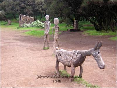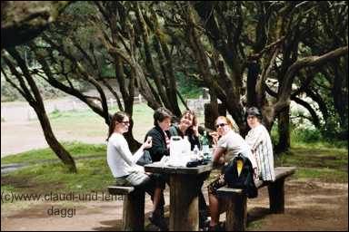 Da wir so früh ins Bett sind, waren wir natürlich auch sehr früh wieder wach. Um halb 10 bin ich ins Internetcafe von La Calera, immerhin 4 Rechner in einem Reisebüro mit DSL. Das kann ich auch im Urlaub nicht sein lassen ;-) Gestern abend war alles besetzt von jungen Mädels die gechattet haben wie die Weltmeisterinnen.Silvi kam mich dann kurz nach 10 abholen und wir sind ins Büro von Servicios Integrados. Dort holte uns eine Frau von der Leihwagenfirma ab und fuhr mit uns nach La Playa in das Büro der Leihwagenfirma. Schnell machten wir die Leihverträge und fuhren zurück nach La Calera, nicht ohne gleich gesehen zu haben, dass es sich lohnt in La Playa zu bummeln, denn dort gibt es Läden ! In La Calera hat es zwar etliche Supermärkte aber nur einen anderen Laden, langsam macht sich ein "Bummelgehenentzug" breit. Schnell haben wir unsere Sachen in die zwei Autos verpackt und in die Casa Mercedes tranportiert. Ein Unterschied wie Tag und Nacht zur Casa Marisol, die wir ja bösartigerweise Casa Wartburg getauft hatten. Aber auch in der Casa Mercedes wird nicht alles Gold sein was glänzt, aber dazu später ;-) Auf jeden Fall haben wir nun eine große überdachte, windgeschützte Terrasse, vier Zimmer, einen Flur falls es nochmal zu kalt ist zum draussen frühstücken, die letzten zwei Frühstücke fanden in Daggi und meinem Zimmer statt, das wir erstmal umräumen mußten, da uns auf dem Balkon alles weggeflogen wäre. Das Beste ist aber die RIESIGE Dachterrasse, teilweise sogar ohne Einblick :-) Da in der Mercedes noch zwei Frauen am putzen waren sind wir dann gleich los in Richtung Nationalpark.