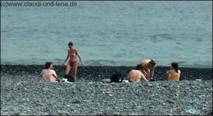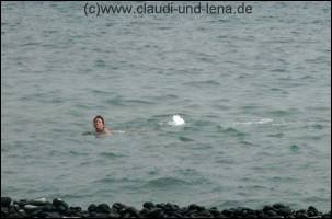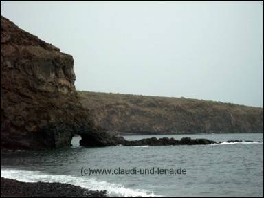 Wir sind dann weiter nach Playa Santiago im Süden der Insel aber der Strand, den wir uns ausgesucht hatten lud nicht lange zum Verweilen obwohl er in unseren Reiseführern als schöner Strand erwähnt war. Nur Sabine traute sich ins Wasser. Es war recht wellig und steinig. Auch die Landschaft ist lange nicht so schön zum anschauen wie im Valle Gran Rey. |