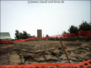 Dann waren wir auf dem Gipfel und das Gipfelkreuz ist frecherweise eingezäunt! Eine Baustelle auf dem Berg.