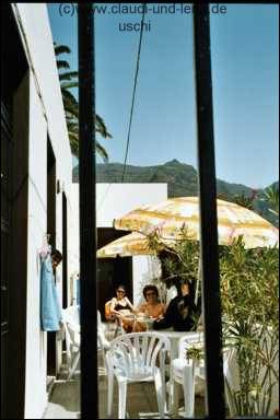 Wir waren nun jeden Abend sehr gut Essen, ob im El Mirador, im El Descansillo, im Sebastian oder im Orquidea. Die teuerste Rechnung war am Sonntag für 5 mal Paella, 4 Salate,4 Liter Wein, 3 Liter Wasser, 6 "Anisatoren" (Daggis Name für den spanischen Anisschnaps), 2 Bier und 2 Cola € 120.-. Ansonsten waren wir immer mit ca. € 80.- inklusive Getränke nicht teuer dran. Den Abend haben wir dann endlich in der Casa Mercedes auf der herrlichen Terrasse mit Meerblick ausklingen lassen. |