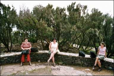 Nach einer Stunde sind wir dann wieder aufgebrochen. Immerhin haben wir den schrecklichen Golfplatz von Fred Olsen, einem Norweger dem wohl einiges auf Gomera gehört, samt dazugehörigem Luxushotel gesehen. Auch der Flughafen von Gomera ist neben Playa Santiago, allerdings ist dieser durch die nur 1,5 km lange, bzw. kurze Lande- und Startbahn nicht für internationale Flüge freigegeben. Durch den mittlerweile noch nebligeren Nationalpark sind wir dann zurück nach La Calera gefahren. A bisserl hab ich jeden Tag an den Bildern geschafft, so ganz ohne Rechner geht es halt doch nicht lange bei mir ;-) |