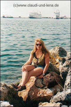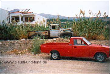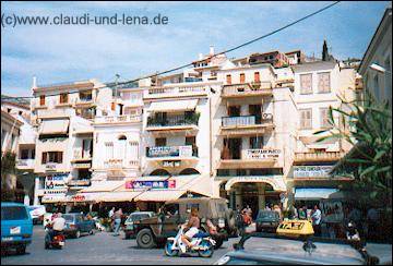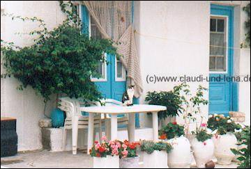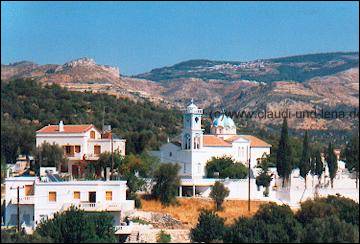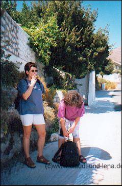Am nächsten Morgen, nach einem ausgedehntem Frühstück auf dem großen Balkon des kleineren Appartments, sind dann Silvie, Sabine, Steffi, Uschi und Daggi aufgebrochen ein Kloster zu besuchen. Gaby und ich waren währenddessen in Ormos Marathokampos unterwegs. Die 5 hatten das Glück, ein Stückdes Weges von einem am Abend bei Manolis kennengelernten Griechen, auf dem Pickup mitgenommen zu werden. |