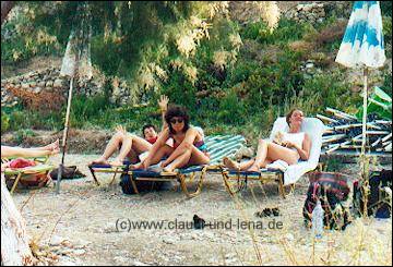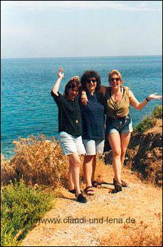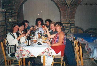 Der Frauenstammtisch auf Samos vom 25. September bis 02. Oktober 1995 Zu unserem 10 jährigem Stammtischjubiläum 1995 beschlossen wir etwas ganz besonderes zu unternehmen. Schnell waren wir uns einig, dass wir eine ganze Woche ohne Männer und Kinder, sofern vorhanden, in den Urlaub fliegen werden. Klar war auch, es muss Griechenland sein, eine Insel auf der noch keine von uns war und klein und familiär, da wir alle die großen Hotelbunker nicht so mögen. Durch die Katalogangebote was Appartments und Studios anging fiel unsere Wahl dann auf Samos und wir haben es nicht bereut :-) |
