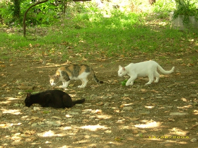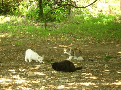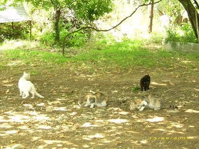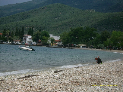 Natürlich waren wir nicht nur auf dem Hotelgelände. Obwohl griechiches Pfingsten war sind wir gleich Sonntag zu einer Fahrt aufgebrochen, es hat am Morgen nicht geregnet und wir sind auf die Suche nach einem schönen Strand gegangen. Fündig sind wir allerdings nicht geworden, lag auch mit am Regen, der uns auf der Fahrt an der Küste lang überraschte. Zufällig sind wir dann in einem kleinen Fischerdorf gelandet, Kottes heißt es... zwei Tavernen, kaum Leute, da haben wir dann erstmal einen Frappee in der Taverne "Xristos" bestellt und die Ruhe genossen. Die Bilder fehlen mir leider, denn es war nett den Frauen beim Fische putzen zuzusehen, dem Angler, der zwischendurch immer wieder an den Tisch kam und weiter gegessen hat ...der Yacht, die angelegt hat ...und die Tintenfische die zum Trocknen hingen...dann haben wir uns zwei Fische ausgesucht und dazu einen Salat bestellt ...und mir, die noch nie nen Fisch freiwillig gegessen hat, hat es geschmeckt ... Dazu war der Preis für zwei Fische, einen Salat und Getränke mit 23.- Euro sehr positiv überraschend. Nach gut zwei Stunden sind wir dann weitergefahren, bis wir in Agios Kyriaki angekommen sind, mit Blick auf Skopelos, in dem die Strasse zuende war...was hab ich geschwitzt mit dem Auto da wieder rauszukommen, denn alles war zugeparkt....dann sind wir zurück ins Hotel nach Kala Nera und dort an den Strand...nach dem Motto..."warum in die Ferne schweifen, wenn das Gute liegt so nah" *g |