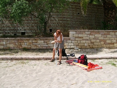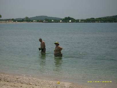In Plataria angekommen fuhren wir erstmal zu Vicky in den Laden. Ingrid war noch am Zimmer richten. Da die Betten relativ schmal für zwei ausgewachsene Frauen sind, haben wir zwei Zimmer genommen. Den Abend verbrachten wir gemütlich im Dorf. Für das schlechtere Wetter auf dem Pilion wurden wir im Epirus entschädigt, es wurde bis 41 Grad warm, mir persönlich viel zu heiß um groß was zu unternehmen. Also waren wir hauptsächlich am Strand. Samstag in Karavostasi, ein schöner Strand an dem ich schonmal bei Regen war. |