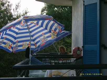 Montag, an meinem Geburtstag, waren wir erst in Igoumenitsa bummeln, uff war das heiß, aber immerhin kaufte ich mir von meinem Stammtisch Geburtstagsgeld ein paar Sandalen.... Am Abend waren wir zu Vicky und Vangelis zum Grillen eingeladen. Eigentlich wollte ich sie ja zum Essen einladen aber ich hatte keine Chance, so hatten wir einen sehr netten Abend im Hof mit lecker Essen. Ist auch interessant, wer und was da so alles am Hof vorbeifährt und -läuft, sogar ein Wagen mit Riesenkartoffeln, die dann aber doch Galiamelonen waren *lach* |