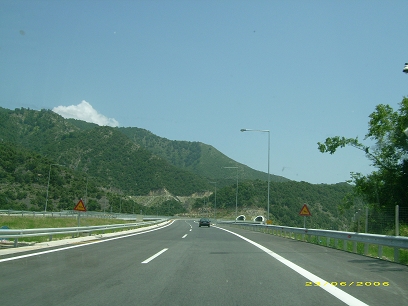 Denn eigentlich ist die Strecke von Igoumenitsa bis Ioannina fast fertig mit einer Unterbrechung bei Paramythia. Dann steht man an einer Kreuzung mit einem Schild nach links für LKW und einem Schild nach rechts für PKW...wir sind einstimmig links abgebogen, dachten wir doch, die LKW werden auf das nächste Autobahnteilstück gelotst...weit gefehlt, wir landeten auf der alten Straße und quälten uns die Kurven zum Katarapaß hoch. Bei Metsovo ist dann nochmal ein Teilstückchen offen .... |