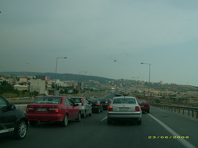 In Saloniki nahmen wir mal kurz einen kleine Stau mit, es gewitterte dazu...die Zivilisation hat uns wieder ;-) Wir fuhren bis am Flughafen vorbei nach Perea wo wir usn ein Zimmer suchten. Leider gewitterte und regnete es den ganzen letzten Abend :-( Wir verbrachten ihn in einer Fischtaverne, die aber irgendwie nicht mehr alles im Angebot hatte *g Das Hotel Xenia war relativ preiswert, auch wenn ich mir vorkam wie in einem bissle veraltetem Hotel in Brighton ..doch für 40 Euro für die Nacht und das Zimmer konnten wir uns nicht beschweren. Und das Frühstück war sehr gut. |