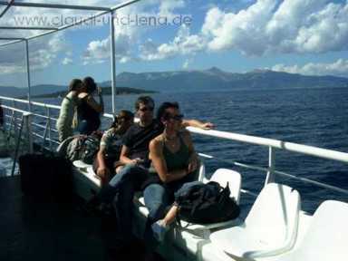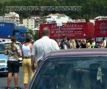 Ein Taxi stand da, 10.- zum Hafen, wie letztes Jahr und um 16.15 Uhr legte die Ag. Spiridon ab. ENDLICH wieder in Griechenland :-) In Igoumenitsa angekommen holten Frank und ich das von mir gebuchte Auto, ein Fiat Panda mit Klima und Radio, wieder, wie letztes Jahr, eine Klasse größer als gebucht, zum gleichen Preis. Auch das Gepäck paßte mit uns zusammen rein, wenn auch nur knapp *g Dann ging es schnell nach Platariá zu Vicky in den Laden, wo wir erstmal mit Frappee bewirtet wurden.