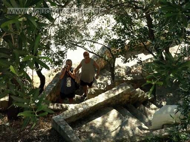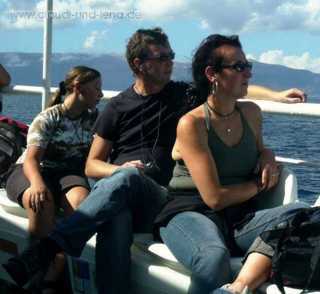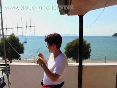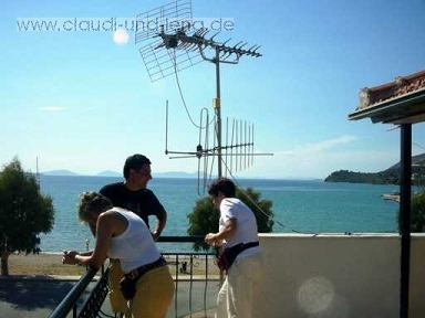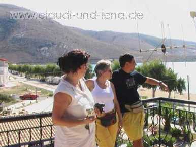 Auf die Bemerkung von Focki, dass sie ja wohl nirgendwo Ruhe vor mir hätte, und es ja wohl letztes Jahr am Abflug gelangt hätte, dass wir uns in Griechenland gesehen haben, ging ich nicht näher ein, wir können uns eben gut leiden *g Auf jeden Fall war die Überraschung geglückt und es ging gemeinsam nach Plataria. Da bei Vangelis durch Petra und Frank ausgebucht war, hat er die Berliner ausquartieren müssen, aber ein schönes Zimmer gefunden, zu dem wir die zwei dann nach einem kleinen Imbiss bei Petros begeleitet haben. |