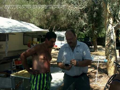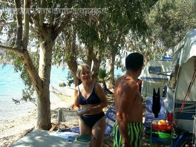 Mittwoch war ja das "geheime Geheimtreffen" angesagt. Focki und Tachpost nahmen die Fährfahrt von Korfu aus dem Exil auf das Festland auf sich. Wir wollten sie natürlich alle gemeinsam am Hafen überraschen, also sind wir "Platarianer" auf den Camping Elena gefahren um Maria und Dietmar abzuholen. Ein wunderschöner Campingplatz, nur zu empfehlen ! |