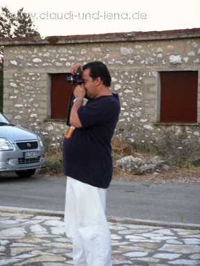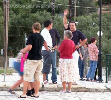 Eigentlich wollte Vangelis mit uns dort in einem Kafenion essen, aber der Grill war nicht an, deswegen sind wir dann wieder "runter" gefahren und haben in Platariá gegessen. Und, wie langweilig?...NEIN, den Abend wieder bei Vasilis ausklingen lassen. Der arme Günther hatte sich ja schon schwer verletzt an einem der Abende, als er ein kleines Wettrennen mit Lena veranstaltet hat. Nun bleibt er immer brav am Tisch sitzen ;-) Lena ist auch mittlerweile Abends mit der Dorfjugend unterwegs, herrlich, richtig Urlaub :-) Auch wurde fleissig Abschied von Iris und Michael gefeiert, na ja eher bedauert ehrlich gesagt ;-), die ja Freitag Morgen auf die Fähre mussten...... |