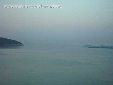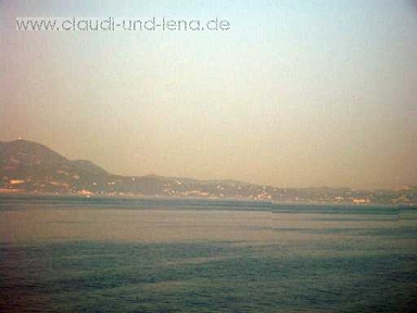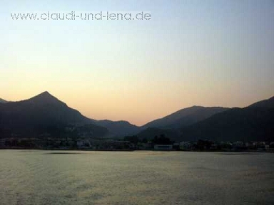 über den Bergen....spiegelglattes Meer....nur ein wenig standen wir