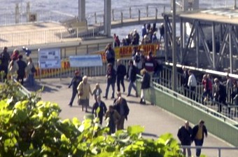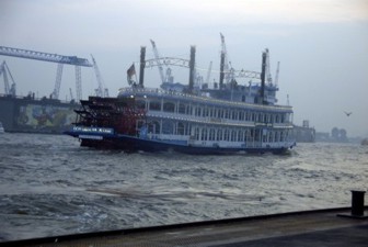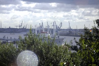Als die Beiden dann endlich am Hafen angekommen sind haben wir ersteinmal die Hafenfähre genommen. Leider machte diese in Finkenwerder Endstation. Dadurch hatten wir eine halbe Stunde Aufenthalt. Ein Glück gab es einen Imbiß, wo wir dann etwas getrunken haben. |