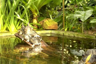 Im Alten Botanischen Garten ist auch ein Treibhaus, da sind wir natürlich sofort rein. Empfangen wurden wir von den Wasserschildkröten. Dazu gibt es Unmengen von Pflanzen, Bäume, Blüten und eine Halle mit Kakteen. |