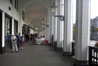 Wir holten dann Sanny und Joe ab und fuhren wieder an den Jungfernstieg. Um 13.45 Uhr wollten wir die Fleetfahrt machen, allerdings war sie leider schon ausgebucht. Da reservierten wir gleich Karten für die Fahrt um 16.45 Uhr und machten uns zu Fuß weiter auf den Weg. Hunger bekamen wir doch auch langsam.
