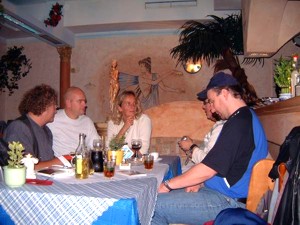 Joe führte uns mit der U-Bahn, in der Sanny und ich vor lauter Hunger fast noch einem Kind einen Döner entwenden wollten, zu einer Imbiß-Gaststätte in der Dehnheide. Dort stillten wir unseren Hunger und beschlossen uns zu trennen und am Abend wiederzutreffen um zu Michael und Susanne zu fahren. |