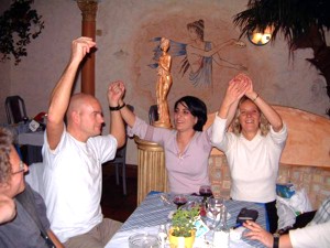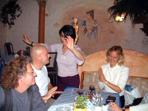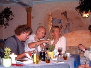 Irgendwie war es ein seltsamer Tag, mein Fotoapparat ist kaputt gegangen, Sanny hat ihr Armband aus Kreta verloren, Späße wurden falsch verstanden, es regnete ohne Unterlass, na ja, soll es geben so Tage ;-) Wenigstens der Samstag Abend wurde noch nett nach dem verkorksten Tag. Das griechische Restaurant (Fedra in Fuhlsbüttel)war sehr gut und wir liessen uns die Köstlichkeiten schmecken. |