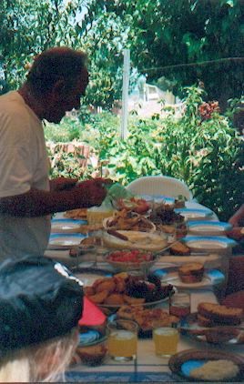 ich bis jetzt, aber die kretische Magie wirkt an uns beiden. Ohne Kind hatten wir die Gelegenheit Kreta mit dem Leihwagen, mit Bus und zu Fuß genauestens zu erkunden. Natürlich durfte auch die Samaria Schlucht nicht fehlen. Peter hatte zwar drei Tage danach noch Muskelkater, fand die Schlucht aber auch beeindruckend. 1995 hatten ich das Glück eines kleines Lottogewinns, da wurde natürlich gleich wieder eine Reise nach Kreta gebucht. Lena war noch keine 2 Jahre alt, dadurch sind wir wieder ins Hotel Amalthia. Der größte Vorteil des Hotels ist nämlich, dass es an einem wunderschönen Strandabschnitt liegt, flach abfallender feiner Sandstrand, optimal geeignet für Kinder und natürlich auch für Erwachsene. Unsere Lieblingswirte waren mittlerweile nicht mehr Pächter der Hoteltaverne aber gleich nebenan. Und wir waren einfach wieder zu Hause. Klar war uns nach den dritten drei Wochen, es war nicht das letzte Mal, dass wir in Ag. Marina Urlaub machen. Zwar haben die vier Jahre seit 91 auch hier viel verändert, die Touristen sind überall gerne gesehen, aber insgesamt ist der Westen noch ruhiger geblieben als der Osten. Seit 1996 wohnten wir einmal im Jahr unsere obligatorischen drei Wochen in einer kleinen privaten Hotelpension in einem zwei Zimmer Appartement, am gleichen Strandabschnitt. Nur ein kleiner Fußballplatz trennt uns vom Meer. Vergangenes Jahr haben wir ein Berliner Ehepaar mit Tochter kennen gelernt. Sie waren Last Minute in einem benachbarten Hotel, leider nur für eine Woche. Schnell waren wir uns einig, dass wir unseren nächsten Urlaub zusammen bei Stergios und Antonia verbringen werden. Zum Glück gibt es dort zwei Appartement. Bei jedem Besuch, ob in Berlin oder bei uns in Ludwigsburg war natürlich unser Urlaub das Hauptthema. Es wurden Reiseführer gewälzt, Internet Seiten besucht und viele Fotos und Dias angeschaut. Da Britta, Rene und Lisa nur zwei Wochen Urlaub machen konnten, einigten wir uns auf drei Tage Leihwagen, auch der Kinder zuliebe. Lena muss nämlich auf kretischen Bergstraßen öfters mal ein "Spuckerle" machen, dass war Peter und mir schon gut bekannt. |
