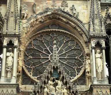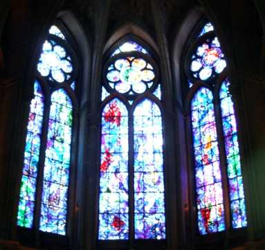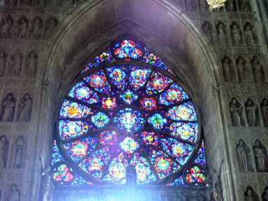 In Reims haben wir die gigantische gotische Kathedrale Notre Dame (erbaut 1211 bis 1300) besichtigt. Das Fenster unten ist von Marc Chagall gemacht worden. Ansonsten war die Stadt lange nicht so schön wie Paris, wenn es auch hier viele alte Gebäude gibt, aber mir kam alles ein wenig trostlos und verfallen vor. |