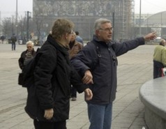 Samstag früh wachte Rainer als Erster auf und konnte es nicht lassen uns anderen vier auch aus den Betten zu werfen. Durch das Radio im Apartment war das auch kein großes Problem für ihn *g Immerhin war es schon 10.00 Uhr, Lena und ich wollten ja eigentlich gegen 11. Uhr bei Werner, ihrem Urlaubsopa sein. Also schnell noch Kaffee getrunken, den haben wir mitgenommen und los ging es. Berlin ist ja sooo groß ;-) Wir zwei waren eine Stunde zu Fuß und mit den öffentlichen unterwegs bis wir dann endlich bei Werner waren. Die Freude war aber groß, immerhin hatten wir uns zwei Jahre nicht mehr gesehen. |