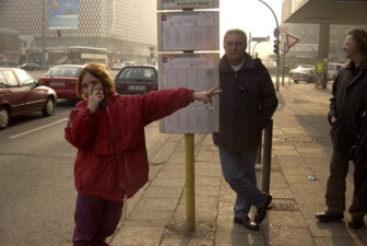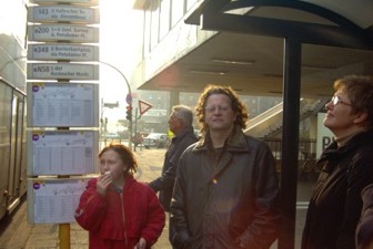 nach zu der Bushaltestelle. Doch irgendwie sind wir einmal um den Alex