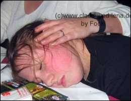 Tja und dann wurde Lena müde, war ja auch ein langer Tag. Ich schwächelte auch, war ich doch auch ein bisschen krank, Donnerstag Abend dachte ich ja, ich könnte gar nicht nach Berlin fliegen...aber es hat ja geklappt. Nun noch eine lustige Geschichte, Rainer war auch müde und erklärte sich bereit Lena, sich und mich mit Joe seinem Bus heimzufahren. Sanny wollte mir ihren Wohnungsschlüssel geben und fand ihn nicht. Dann ist sie an ihr Auto, fand den Schlüssel auch nicht. Der letzte Punkt war in der Küche, da wir einen Karton Plomari mitgebracht hatten, in der Hoffnung, dass der Schlüssel in dem Karton ist. Was sie dann an den Tisch brachte war aber meine Brille! Ich hatte sie auf Sannys Kommode im Flur hingelegt, irgendwer (Manolo?) mußte sie in den Karton geschmissen haben.....so ein Glück aber auch ! Der Schlüsselbund tauchte aber nicht auf, daher gab mir Joe seinen und die Beiden klingelten mich dann wach als sie irgendwann heimkamen.... |
