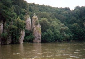 Landschaftlich wunderschön tuckerten wir stromaufwärts auf dem Wildwasser Donau durch den Donaudurchbruch, vorbei an der Befreiungshalle, der steinernen Jungfrau und einigem mehr, in Richtung des Klosters. |