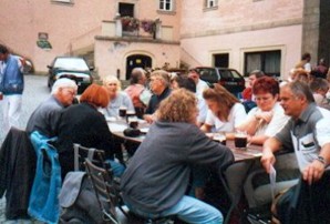 Mittlerweile hatten sich auch Conny und Herbie gemeldet, die direkt mit dem Auto ins Kloster kamen. Einen Tisch im großen Biergarten haben wir schnell ergattert, dann ließen wir uns Klosterbier und -Essen schmecken, ob die Mönche auch so gut leben? Auch von den Schlafmützen kamen nach und nach Anrufe, Anne und Thomas waren recht geknickt verschlafen zu haben, allerdings wollten sie auch nicht noch nachkommen. |