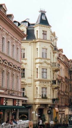 Nach und nach fuhren dann Alle ab, auch Thommy und ich. Gestern sind einige schon in der Tschechei gewesen, die Grenze ist nur ca 2 km von der Dachsbaude entfernt und so konnten doch noch eben preiswerte Zigaretten gekauft werden und getankt werden. Nachdem wir die Karte studiert hatten beschlossen wir, auch über die Tschechei und das Fichtelgebirge heimzufahren. Bei schönstem Wetter fuhren wir los und machten dann eine kleine Einkaufsrast in Karlobarski, Karlsbad. |