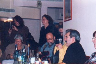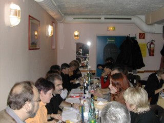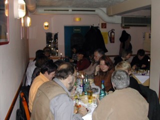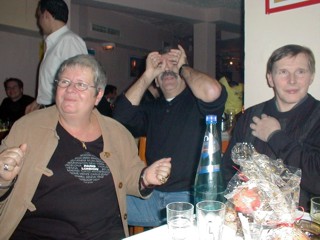 Warum allerdings Peter noch am Montag, wie er gepostet hat, Muskelkater hat kann ich nicht nachvollziehen, ich sah ihn nur mal ein paar Minuten tanzen ;-) Hier sein Kommentar dazu, mit seiner Genehmigung: "ihr haettet mal unter den tisch schauen sollen - oben nix, aber ne mordsbeinarbeit! das is ganz neu, ein sog. sitz-sirtaki - den koennen aber nur wir saarlaender :-)) " Dann müssen wir das nächste Mal wohl unter dem Tisch feiern ;-) |
