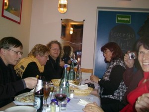 Gabi hat wieder ein Treffen gesund überstanden :-) Ist ihr doch noch immer Bielefeld im Gedächtnis. Gegen 22.00 Uhr fing dann die Band an zu spielen und sofort war gute Stimmung. Auch einige von unserem Tisch wagten ein oder mehrere Tänzchen. Ein bischen unvorteilhaft war die lange Tafel, das Plätze tauschen brauchte erst ein wenig Übung, funktionierte dann aber doch auch.