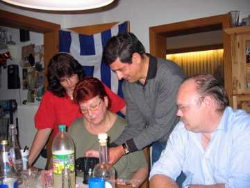 da *freu Maria hatte es sich nicht nehmen lassen ein typisch griechisches Essen auf den Tisch zu bringen, super lecker war das Stifado und davor gab es alles mögliche an griechischen Meze, von Maria und Dietmar selber hergestellt, sogar Muschelsaganaki :-) |