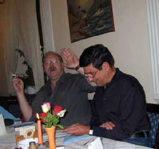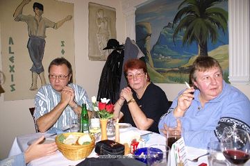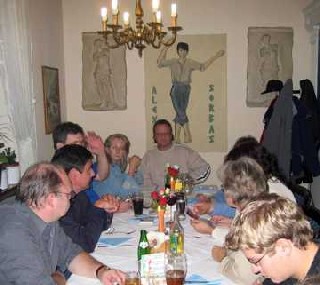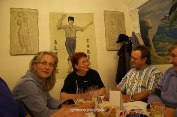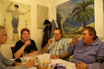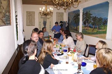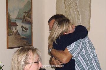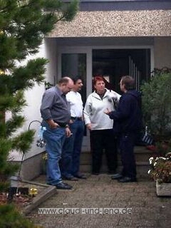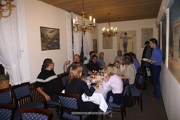 Leider ging der Abend fast wieder zu schnell zu Ende, Timandre, Aspro und Karle hatten ja noch ne Ecke zu fahren...das Wetter war auch nicht so doll, Nebel und feucht. Das Veraschieden dauerte aber naturgemäß viel länger als die Begrüßungen, doch irgendwann waren dann alle weg :-( Wir tranken noch gemütlich im Esszimmer von Maria und Dietmar einen Absacker Ouzo und fielen dann auch in die Betten bzw. Michl auf die Isomatte. Die erste Nacht schlief er auf einer Liege, die uns noch sehr zum lachen brachte da er sein Gewicht falsch verlagert hatte und mitsamt der Liege umfiel. Diese Nacht erschreckte uns nur der Christian, der irgendwie vergessen hatte, dass wir im Hobbykeller schlafen und reingestürmt kam weil er was holen wollte *lach* |