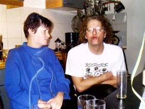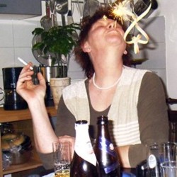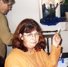 Michael sieht ja aus als ob er kein Wässerchen trüben könne, aber er hat es faustdick hinter den Ohren, war nicht sein Ziel mindestens 100 Bilder von mir mit Zigarette in der Hand zu machen? Ganz hat er es nicht geschafft, sooo viel rauche ich doch auch nicht. Dazu hat er so ungefähr ab Mitternacht ständig sein Glas gesucht, er meinte wohl, so fällt es nicht so sehr auf dass auch er kräftig mitgetrunken hat ;-) |