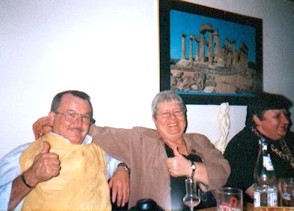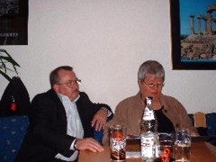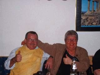 Anwesende: Rainer und Tamara, Eddy und Sofia, Thommy, Marlene, Alexia (Ute), Uno 1, Susanne, Noula und Chrissoula, Heike, Aspronisi und Karlheinz (das Geburtstagskind), CapitanO (ab abends), Psiliamos (ab abends), die Überraschungsgäste Laki und Pepe (ab abends), Claudi und Lena. Dann war noch ein Mann da der behauptete Embona zu sein, er trug auch ein Embona Namensschild und sah ihm recht ähnlich, doch wir wussten ja alle, dass er arbeiten muss, spielten aber das Spiel mit ;-) Eddy und Sofia kamen bei mir vorbei uns 5 abholen. Leider standen wir zweimal im Stau und brauchten für die doch relativ kurze Fahrt nach Sillenbuch über eine Stunde und so kamen wir erst einmal zu spät :-( Dazu hatte ich noch mein Handy vergessen und einige hatten nur meine Handynummer. Dadurch bekamen wir die Entschuldigung von Kiria per SMS leider nicht mit :-( Na ja, das zu spät kommen war nicht soo schlimm, immerhin waren schon einige da, Karlheinz und Aspronisi ganz erschöpft, weil sie am Vormittag die Wilhema, den Stuttgarter Zoo erlaufen hatten. |