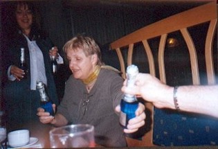 Gegen Mitternacht löste sich die Versammlung dann langsam aber sicher auf, Eddy und Sofia sind zurück nach Dreieich gefahren, Aspro und Karlheinz waren müde von der Wilhelmalauferei und so gingen wir dann alle nacheinander heim. Zum Abschied gab es noch einen Piccolo für jede/n damit wir beim Bidler schauen noch ein feines Getränk haben :-) |