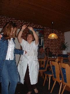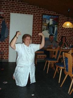 Lena übte sich gegen später, als Chrissoula mit ihren 4 Jahren dann im Bett war, als Animateurin. Sie plazierte uns "theatermäßig" auf Stühlen und tanzte uns dann mit Noula was vor :-) Es war so richtig nett :-) |