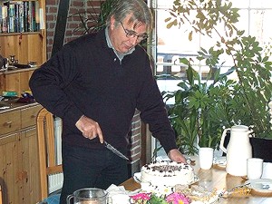 Embona, der wohl auch mal Konditor gelernt hat schneidet fachmännisch die Torte. |