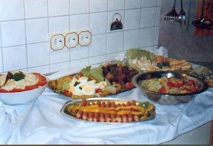 Futterneid gab es keinen, war doch auch genügend für alle da und die Gespräche, natürlich vorwiegend über Griechenland, aber auch.Hausbauen, Wohnungssuche, Haustiere und Kinder, gingen auch mit vollem Mund weiter ;-) |