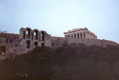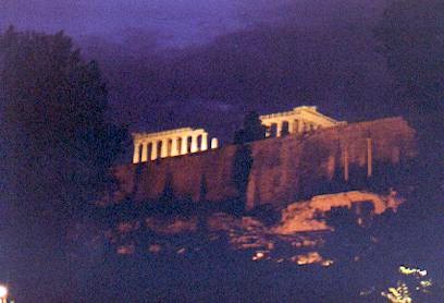 Dann schleppten wir unser Gepäck bis zur Metro und fuhren wieder zum Omonia ins Hotel Alma, von Paros aus hatten wir nochmal ein Zimmer reserviert. Nach einer kurzen Dusche und Erholungspause machten wir uns dann auf den Weg um die Akropolis doch noch bei Nacht und Beleuchtung zu sehen. Dafür fuhren wir bis zur Metrostation Akropoli und schlenderten dann die Areopagitu Strasse entlang. Da stehen tolle Häuser die teilweise gerade saniert werden. |