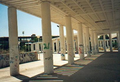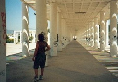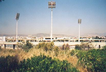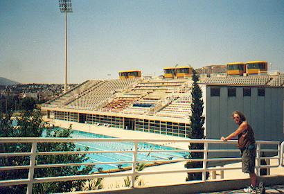 Dort angekommen waren wir erstmal ein bischen entsetzt. Auf dem Gelände wurden 1991 die Mittelmeerspiele ausgetragen, dann sollten dort ja die olympischen Sommerspiele 96 ausgerichtet werden, damals bekam dann bekanntlich Atlanta den Zuschlag. 1997 fanden hier noch die Leichtathletikweltmeisterschaften statt. Davon ist heute kaum mehr was zu sehen. Ein total verwahrlostes Gelände, allerdings schon mit Betonmischerplatz daneben. Dreckig, kaputt, zerschlagene Fensterscheiben und verschmutztes Leichtathletikstadion mit Unkraut überall.......mal sehen ob die Griechen das Wunder vollbringen, aber es ist ja auch bekannt, dass sie so etwas immer wieder schaffen ;-)